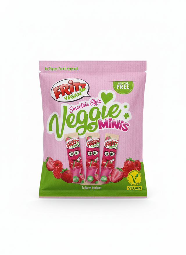 🍓 Fritt Vegan Smoothie Style Veggie Minis Erdbeer & Himbeer 135g – Beerenstark, soft & 100% vegan! 🌱💖