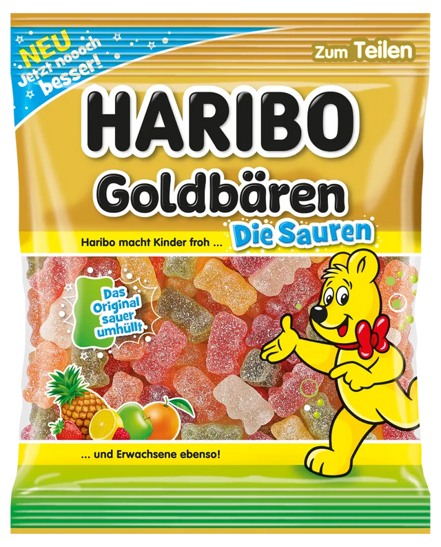 Die Kultbären sind zurück – aber dieses Mal mit saurer Superkraft! ⚡🧃 Die klassischen Haribo Goldbären, die jeder kennt und liebt, wurden in eine spritzig-saure Variante verwandelt, die deine Geschmacksknospen auf ein wildes Abenteuer schickt! 🌪️🍭