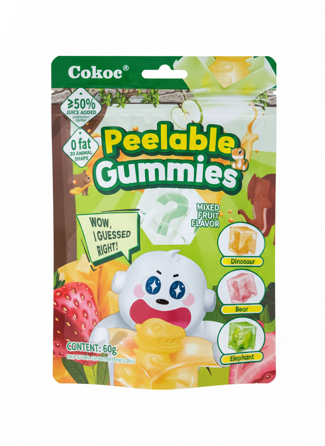Dieser Naschspaß hat es in sich! Die Cokoc Peeling Soft Candy Mixed Fruit vereinen interaktives Schälen mit drei leckeren Geschmacksrichtungen – Apfel, Mango und Erdbeere. Doch das Beste: Im Inneren jeder Fruchtgummi-Schale warten kleine Überraschungsfiguren wie Dinosaurier, Bären und Elefanten! 🦖🐻🐘