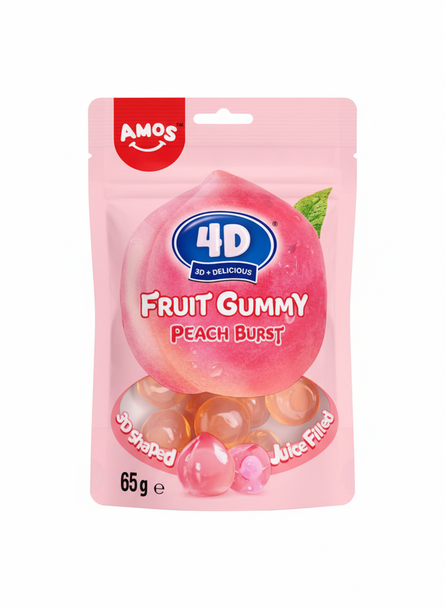 Amos 4D Fruit Gummy Peach Burst 65g – Pfirsichgenuss in 4D 🍑✨