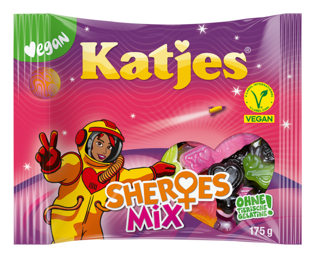 Mit dem Katjes Sheroes Mix bekommst du nicht nur leckeren Fruchtgummi, sondern auch eine starke Botschaft! Diese kunterbunten, weichen Fruchtgummis sind inspiriert von starken Heldinnen des Alltags – und das 100 % vegan! 🌱
